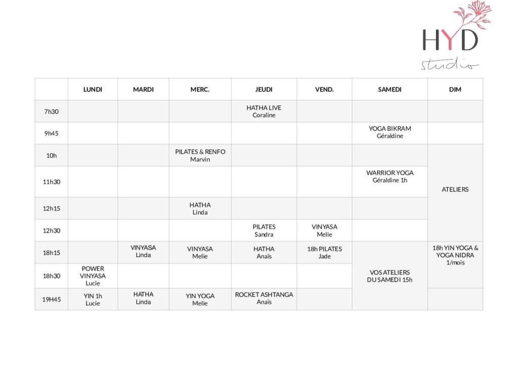 Grâce au panel proposé dans notre studio, vous trouverez la pratique qui vous convient. La souplesse du système de carte de cours permet également de faire évoluer votre pratique tout au long de l’année (changement de créneaux, plusieurs pratiques hebdomadaires)